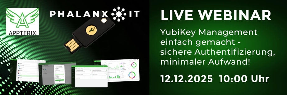 Mit Appterix managen Sie Ihre YubiKeys so einfach wie nie zuvor – von der schnellen Vorbereitung über das effiziente Lifecycle Management bis hin zur sicheren Überwachung im laufenden Betrieb.